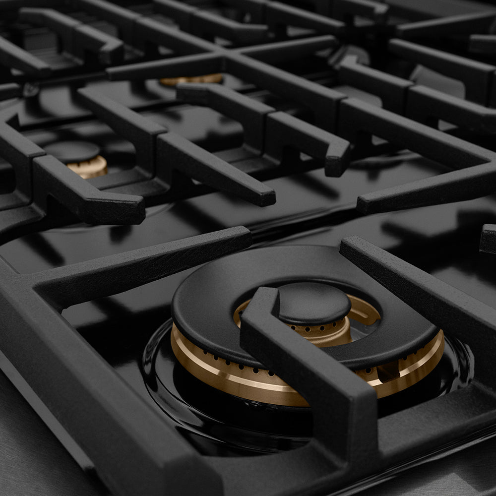 • Cooktop Features: (6) Aluminum Burners and (2) Brass Burner with Porcelain Cook Top with electronic spark ignition for all burners