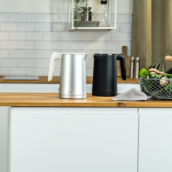 • Seamless stainless-steel kettle with concealed heating element and a stainless-steel limescale filter for easy, residue-free clean up